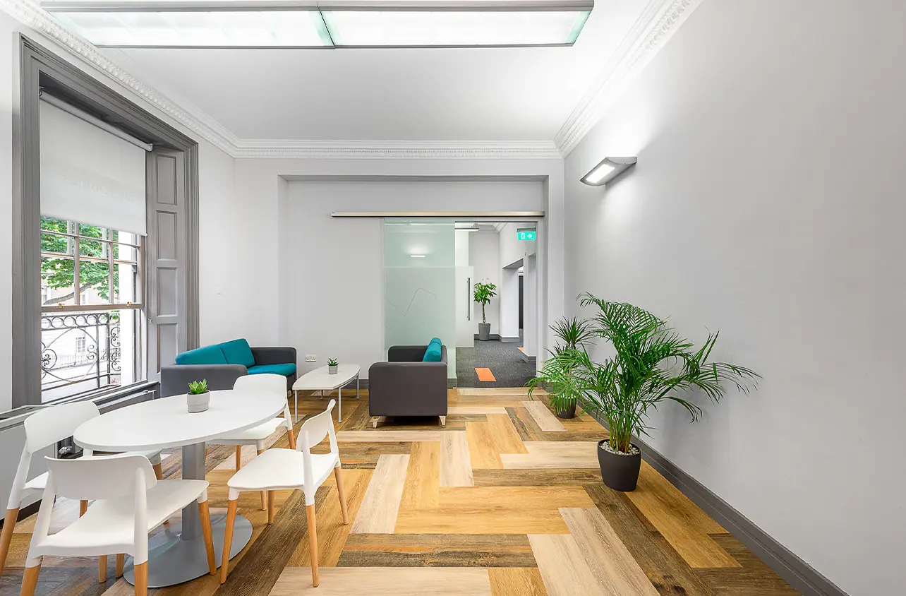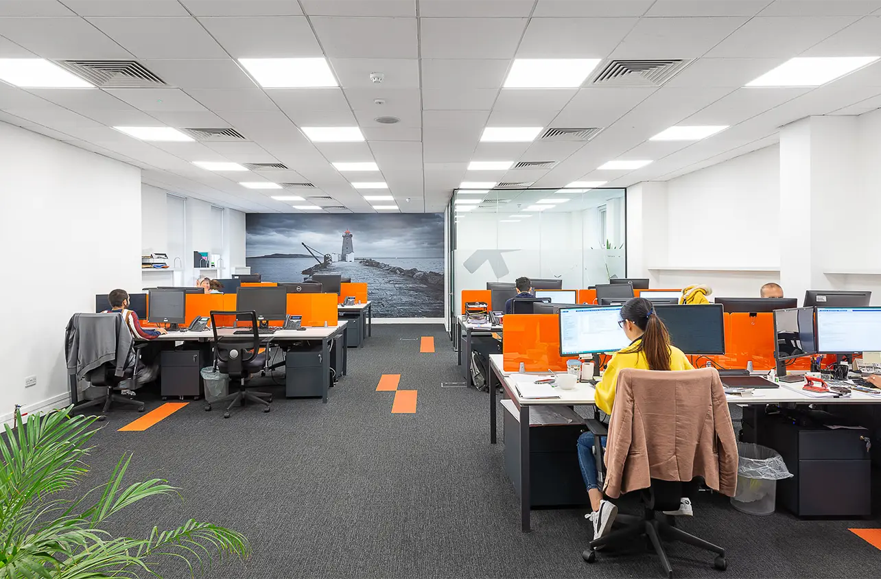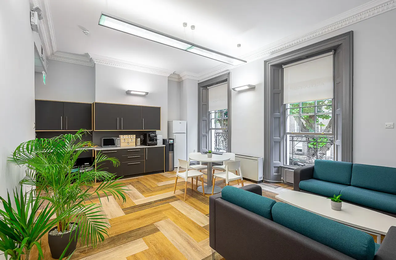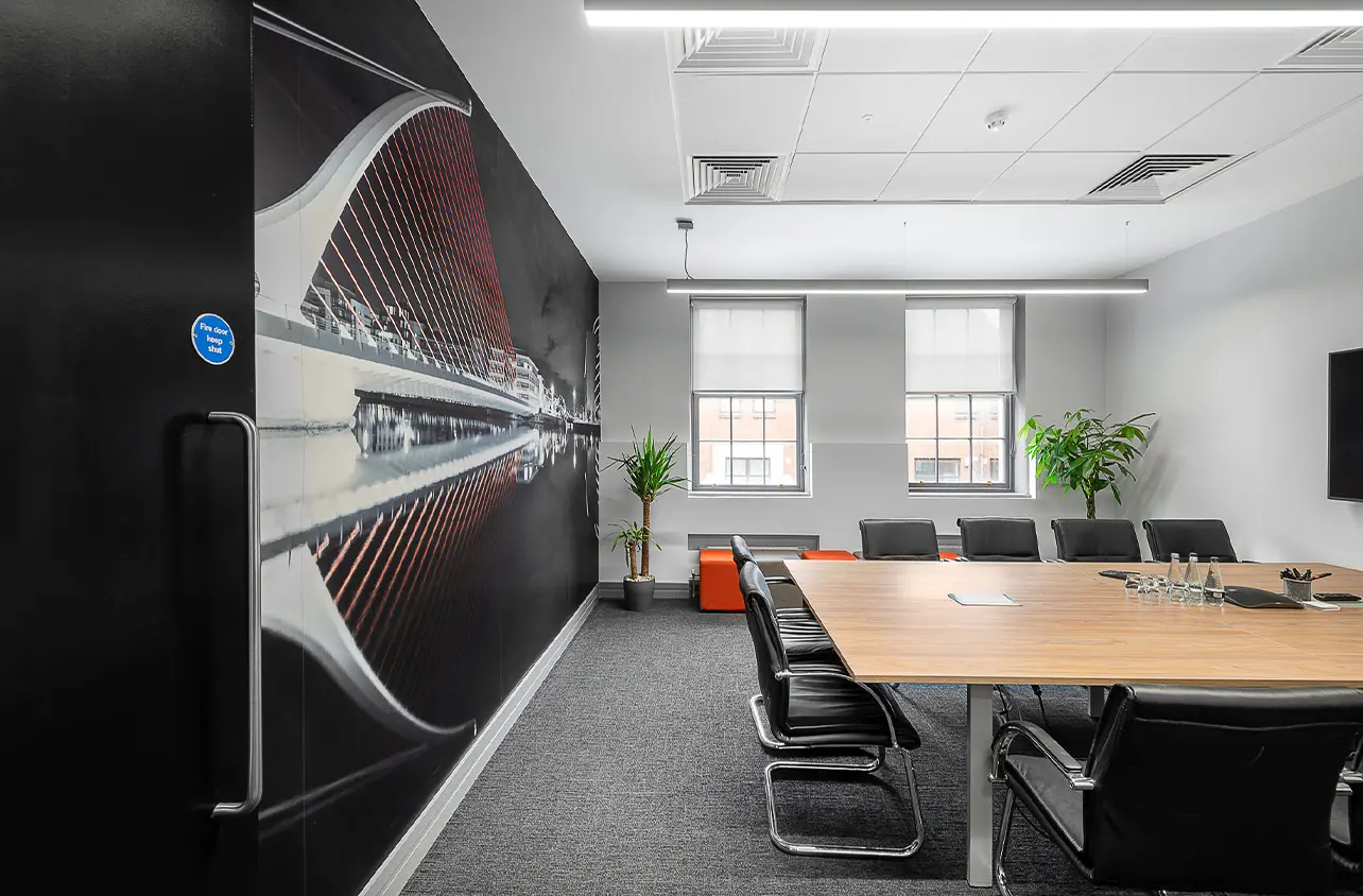 Full Cat B Fit Out for corporate office in Baggot Street, Dublin. Features include a new canteen and contemporary boardroom, with bespoke lighting and colour scheme throughout.